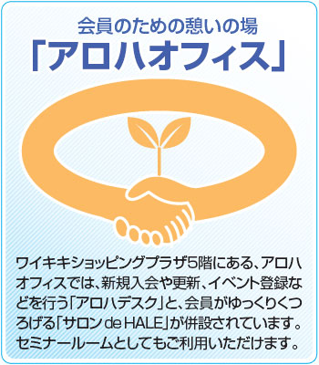 当協会は、ハワイ州のNon-Profit Organization(非営利法人)として、会員の方々がハワイでの心豊かなアクティブライフを実現していただけるよう、またお友達をたくさん作っていただけるよう支援することを目的として2007年に設立されました。年間200以上のイベントを開催するなど、会員同士が交流できる場も充実させております。おかげ様で日本、ハワイを中心に、たくさんの方にご賛同いただき、会員数も900名を超えています。